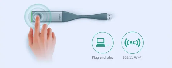 Combinant un système Wi-Fi 5G intégré, le WPP20, module de présentation sans fil, s'associe aux systèmes de salles Yealink pour Microsoft Teams, ZOMM, Blue-Jeans et bien d'autres, afin d'offrir un partage de contenu sans fil de haute qualité en un seul clic. Le déploiement sans fil vous permet d'éviter les contraintes de câblage. De plus, il est possible de connecter jusqu'à 4 appareils à la fois, ce qui vous offre une expérience de collaboration ultime avec un partage de contenu à faible latence. Le WPP20 est compatible avec les systèmes d'exploitation Windows et Mac.